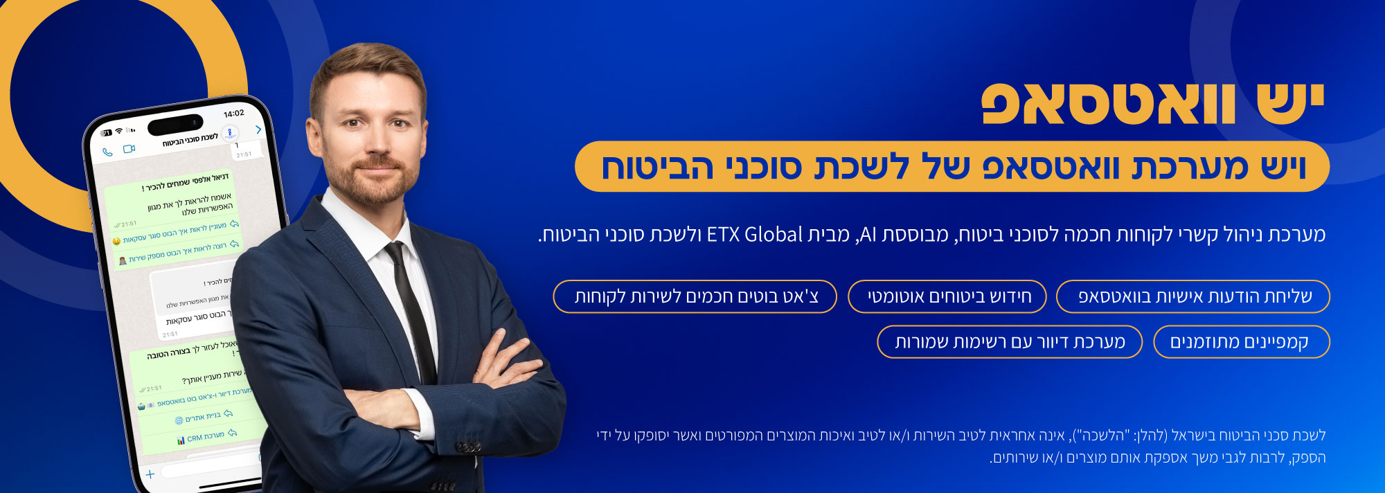 מהיום, יש לך מערכת רשמית של לשכת סוכני הביטוח ו-ETX Global – שמביאה לך יותר מכירות, יותר חידושים, ויותר לקוחות מרוצים.
